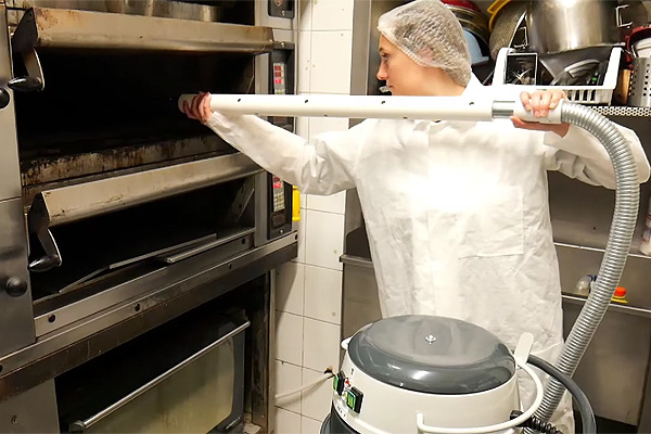 Промышленный пылесос специально для чистки духовых шкафов на пекарных производствах от горячего мусора, золы и пыли. Выдерживает температуры до 250°C. Термоустойчивый фильтр, принадлежности с изолирующими муфтами чтобы избежать ожога.
