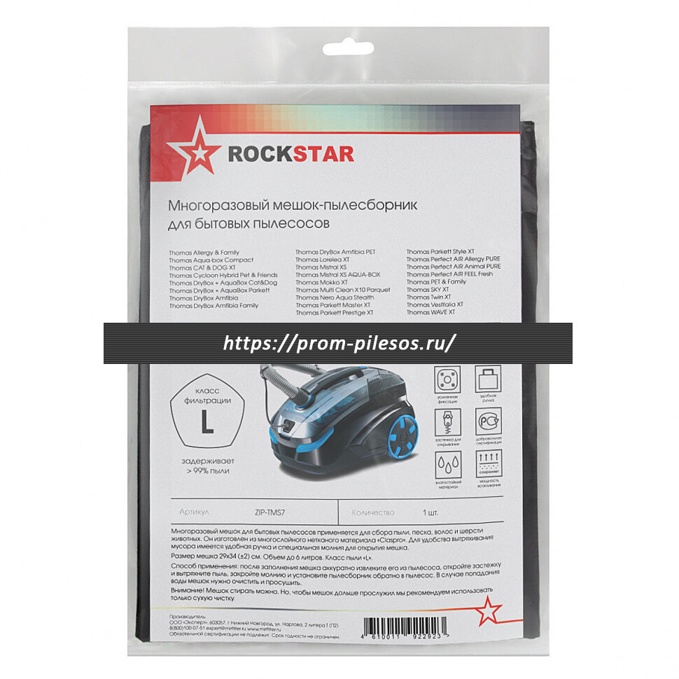 Многоразовый мешок-пылесборник для пылесоса THOMAS применяется для сбора мусора и пыли. Мешок изготовлен из многослойного нетканого материала «Claspro», благодаря чему выдерживает 25 циклов использования. Материал водостойкий, можно собирать влажный мусор и воду. Обладает высокой степенью фильтрации, класс пыли «L». Фланец у мешка пластиковый.