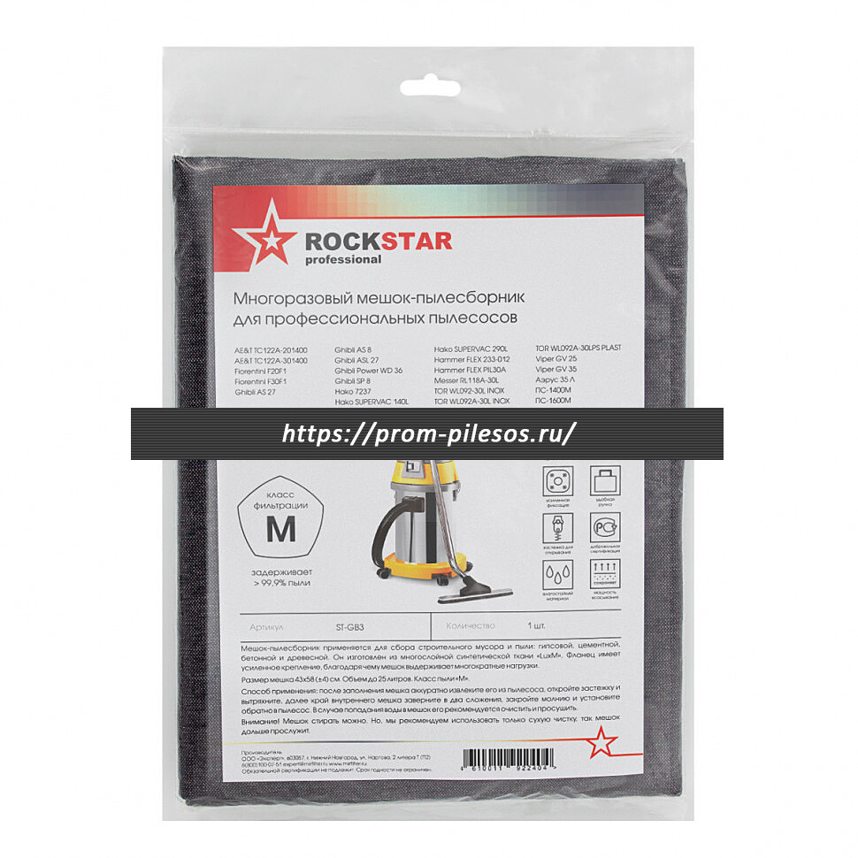 Мешок многоразового использования для профессионального пылесосаGHIBLI применяется для сбора пыли и строительного мусора. Он изготовлен из многослойной синтетической ткани «LuxM», благодаря своей повышеннопрочной структуре гарантированно выдерживает 50 циклов использования. Имеет максимальную степень фильтрации, класс пыли «M». Материал водостойкий, можно собирать влажный мусор и воду, при этом мешок не теряет свои фильтрующие качества. Пластиковый фланец пылесборника имеет дополнительное усиленное крепление. Мешок обрабатывается специальным веществом, которое препятствует размножению микробов.