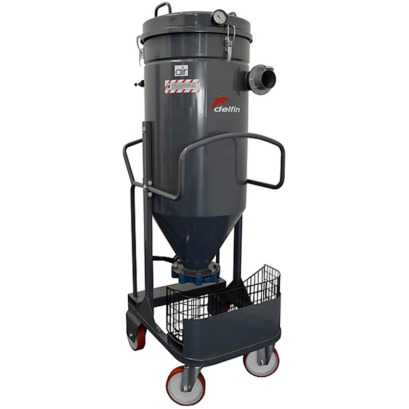 Вакуумная установка Delfin AIR 201 - это промышленный вакуумный аппарат на сжатом воздухе, предназначенный для извлечения больших объемов (200 литров) материалов с высоким удельным весом, таких как песок при пескоструйной обработке и дробь при дробеструйном упрочнении.