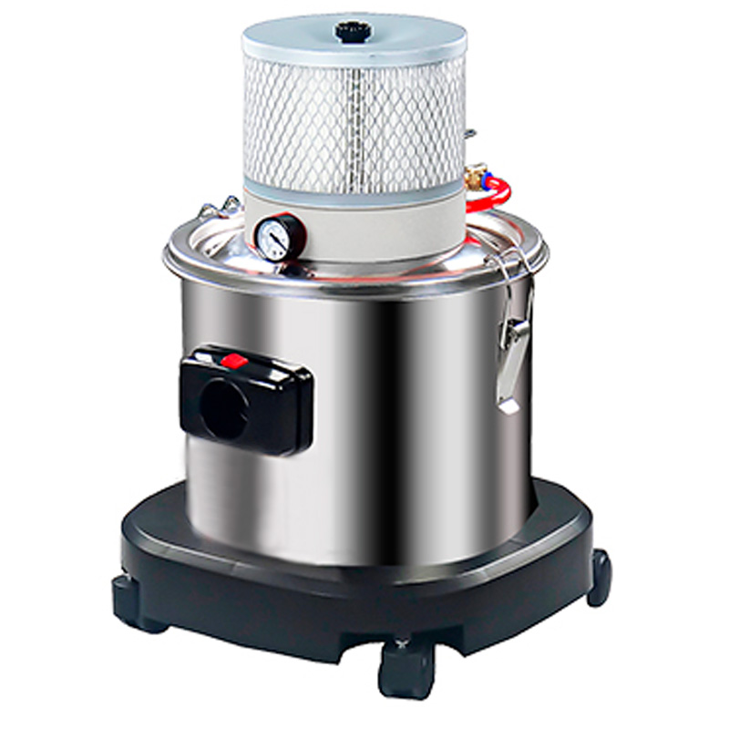 Корпус полностью выполнен из нержавеющей стали, что обеспечивает высокую прочность, устойчивость к коррозии и адаптацию к различным условиям эксплуатации. Воздушный тракт включает циклонный модуль предварительного разделения: основная масса частиц осаждается на дно бака ещё до контакта с фильтром, благодаря чему снижаются потери тяги и увеличивается ресурс расходных материалов. Основной HEPA-фильтр из полиэфирного волокна имеет большую площадь фильтрации 18 800 см², удерживает мелкодисперсную пыль и обеспечивает чистый выхлоп в рабочем помещении.